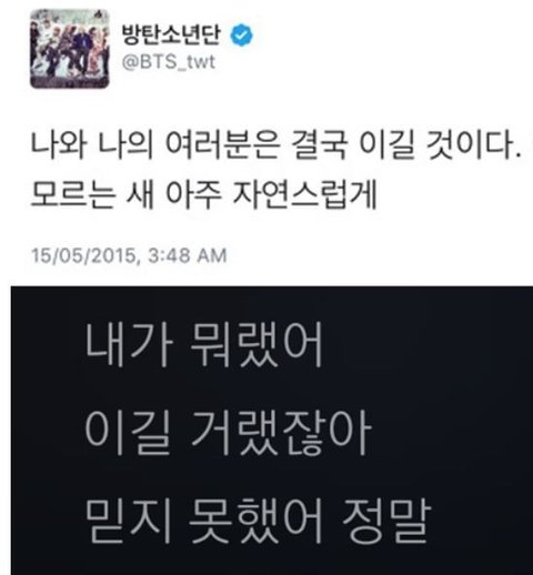 방탄이 무대가 끝난후 느꼈던 허무함과 불안함과 함께