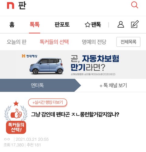 우리 톡선첫페이지갓는데 이거 급해ㅠㅠㅠ