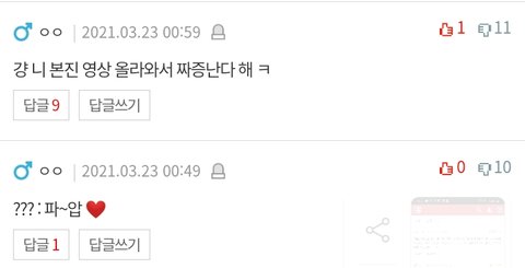★ 댓글 심한거 영상 별표 처리했어 신고 부탁