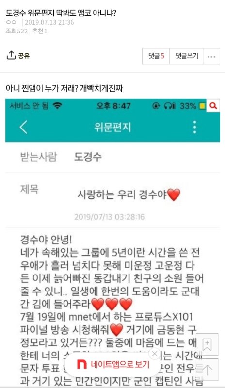 엑소디오한테 이상한 위문편지쓴 주디라고 알아??? 패드립이 평소에 심했고 방탄 엑소 다 패고 다녀서 그 두팬덤이 둘다 이갈고있었던 남연갤 고닉이야