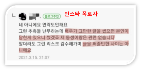 자세히 살펴보면, 이 인스타폭로자의 경우 자신의 거짓말이 탄로날 위기에 처하면 갑자기 특정 사실에 대한 입장을 바꾸고 매우 공격적인 태도를 보입니다.