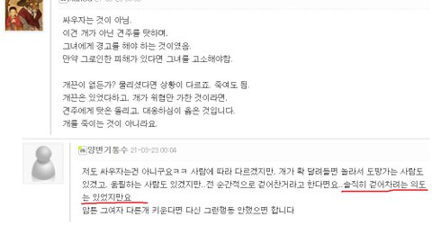 미운 이웃이 있다고 일부러 그 집 개에게 접근해서 개가 공격하도록 유도했습니다. 그리고 그 남자의 표현에 의하면 '힘껏 발로 찼더니 (개가) 뻗어서 벌벌 떨었다' '아마 뒤졌을 것 같다'라고 합니다. 이는 정당방위를 얻기 위해서 치밀하게 사전에 계획한 범죄입니다. 게시글도 정당방위에 해당안될까봐 법률 지식 물으러 올렸습니다.
