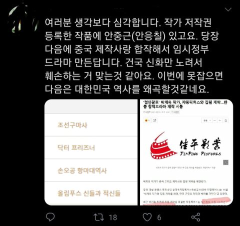 다음 저작권 등록이 안중근의사야 대한민국임시정부로 드라마 만든데 진짜 미친 거 같음