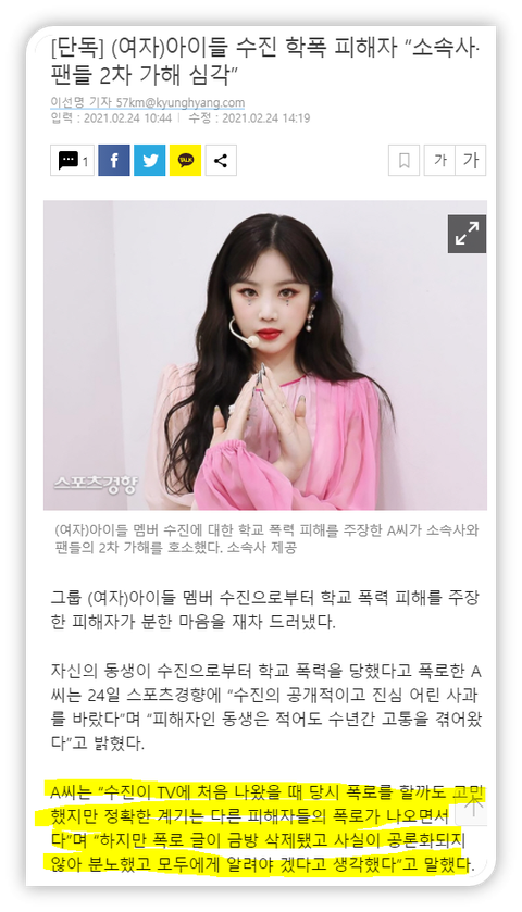 결론 : 언니분께서 직접보신건지... 아니면 최초유포자 말을 믿으신건지 모르겠지만.. 수진측은 심각한 피해를 입었음