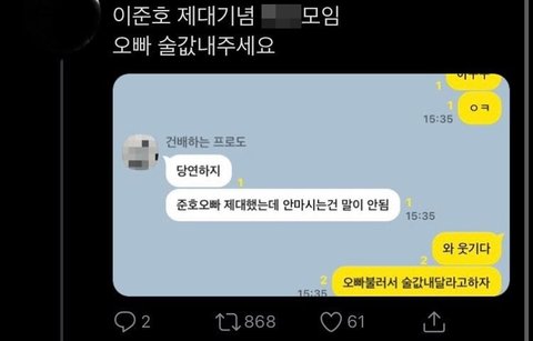 레알 찐준호가 술값내준다고 답글달았음;;;
