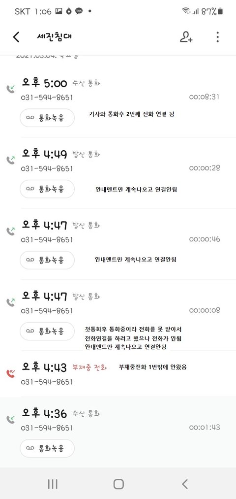 전화를 아무리해도 안됐다고 하니 자기가 2번했는데 안받았다고 기록이 다 있다고