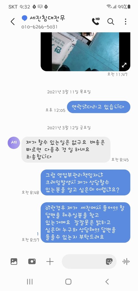 이후 본사에서 그래도 직함이 전무님이란 분에게 연락을 드려서 동영상도 보내드리고 고객상담센터에서 제 전화를 회피한다고 말씀드렸더니