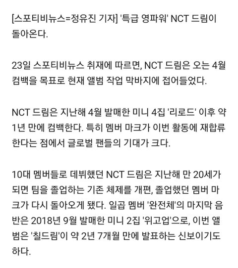 드림 컴백 기사 눈물나네 어카냐 얘들아 진짜