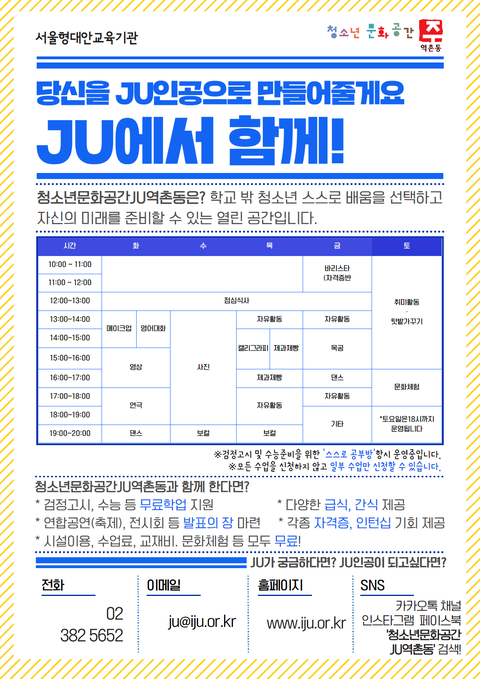 안녕하세요! "청소년문화공간JU역촌동"입니다~