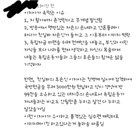연좌제 어쩌고 하는데 친일파 자손이라는것도 이지아 측에서 먼저 언급하지 않았으면 논란 될 이유도 없었을거임