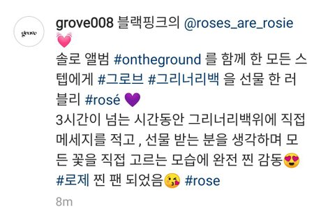 로제가 스탭에게 준 선물을 준비한 꽃집의 후기