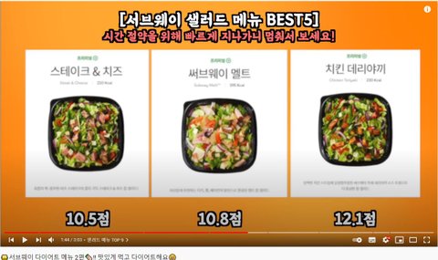셀러드는 점수 좋은 메뉴가 정말 많아.