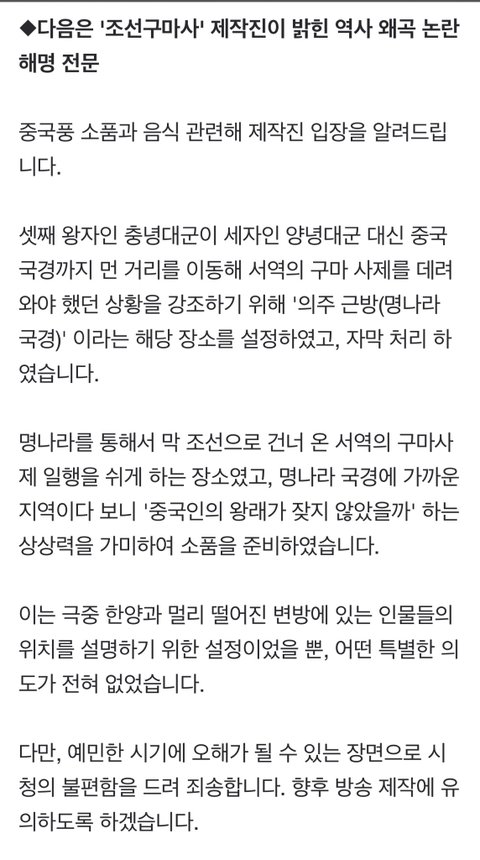 ㅡ 제작진 사과문이 동북공정을 인정한 꼴