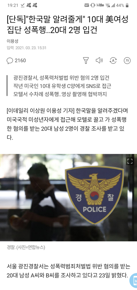유학온 미성년자 외국인한테 한국어 알려준다고 접근한뒤에