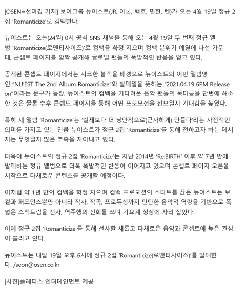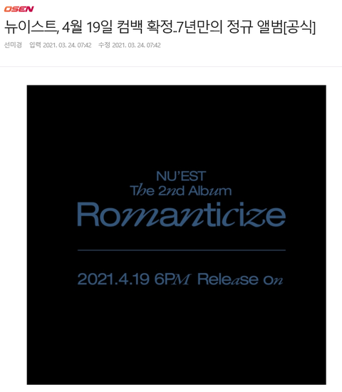뉴이스트, 4월 19일 컴백 확정..7년만의 정규 앨범[공식]
