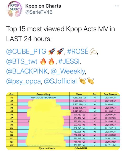 24시간 케팝 뮤비뷰 조회수 1위 - 이틀연속이닷