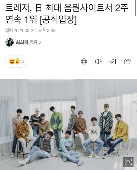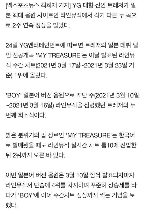 트레저, 日 최대 음원사이트서 2주 연속 1위