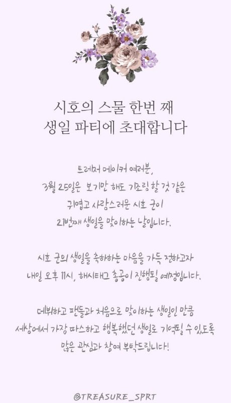 오늘 시호생일 총공있는거 알징?! 이번 서포트팀 마지막 활동이니까 더 열심히 해서 이번에도 실트 꼭 올리자! 트메들 트라차차!!!♡ +아직 해시태그는 공개 안됐엉