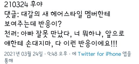 귀여워ㅋㅋㅋ애한테 손대지말래ㅠ
