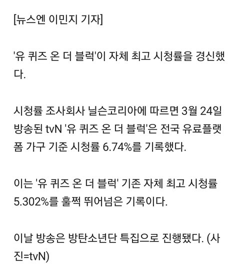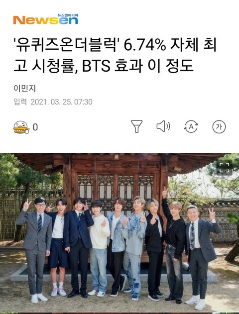 저번주 브레이브걸스가 세운 기존 최고시청률 이번주에 방탄이 다시.. 대박