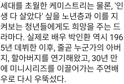 30년만에 미니시리즈 주연 배우 하신 거래 ㅠ