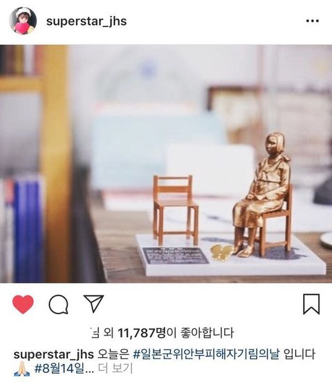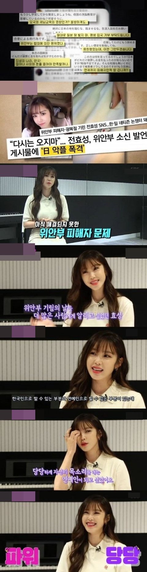 2019년 위안부 관련 SNS 올렸다가 일본인에게 악플테러 받은 전효성