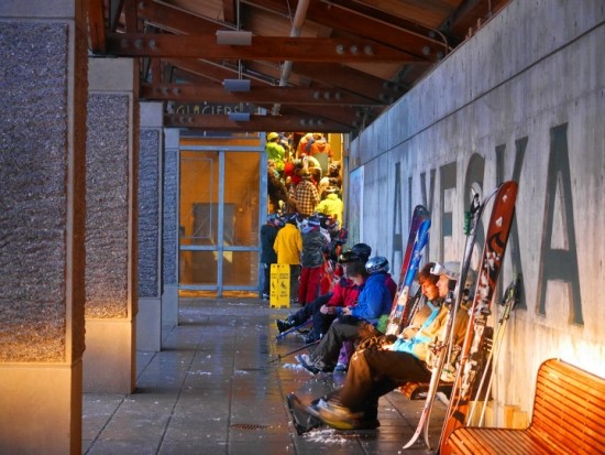 잠시 여기에 보드나 스키를 세워두고 실내로 들어가 간단한 요기들을 합니다.