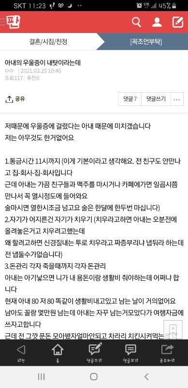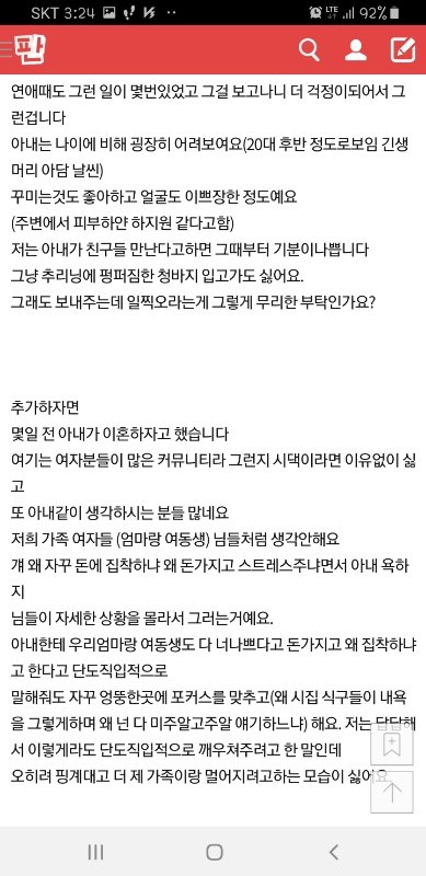 아내는 결혼할땐 분명 니가 용돈 얼마주고 일도(아내 신혼집 타지로오면서 직장포기/현재 공장사무직으로 근무 계약직)