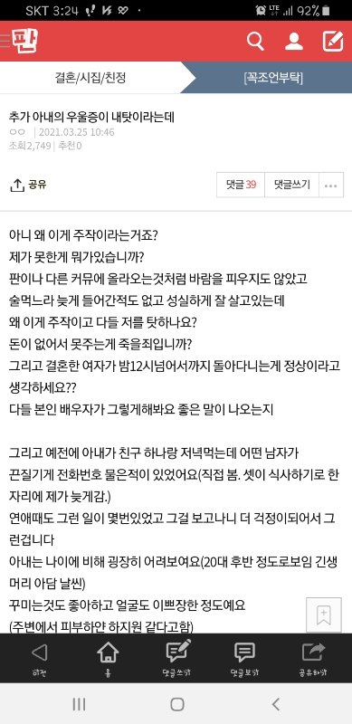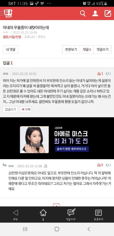 저때문에 우울증에 걸렸다는 아내 때문에 미치겠습니다