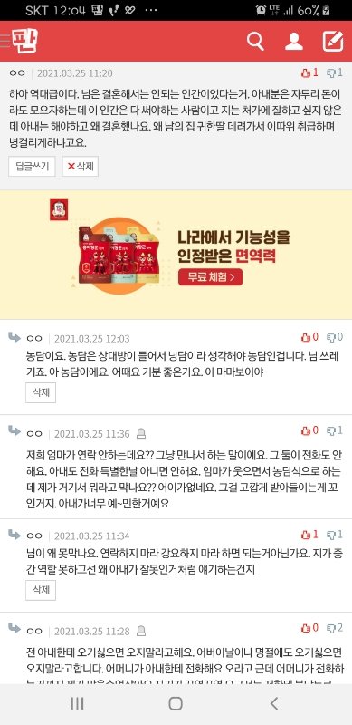 (전 어른이 이정도는 할수있다고 생각해요 그리고 저희 어머니 아내한테 잘합니다. 전화강요없고 그냥 만날때 어쩌다 저소리 한두번하는거뿐이예요. 저도 아내더러 가기싫으면 가지말라고합니다. 근데 아내는 가지말라고해놓고 왜 가기직전에 안가냐고 한번더 물어보냐고 짜증내요. 그냥 물어본건데 혼자 예민해서... 댓글보고 정정합니다)