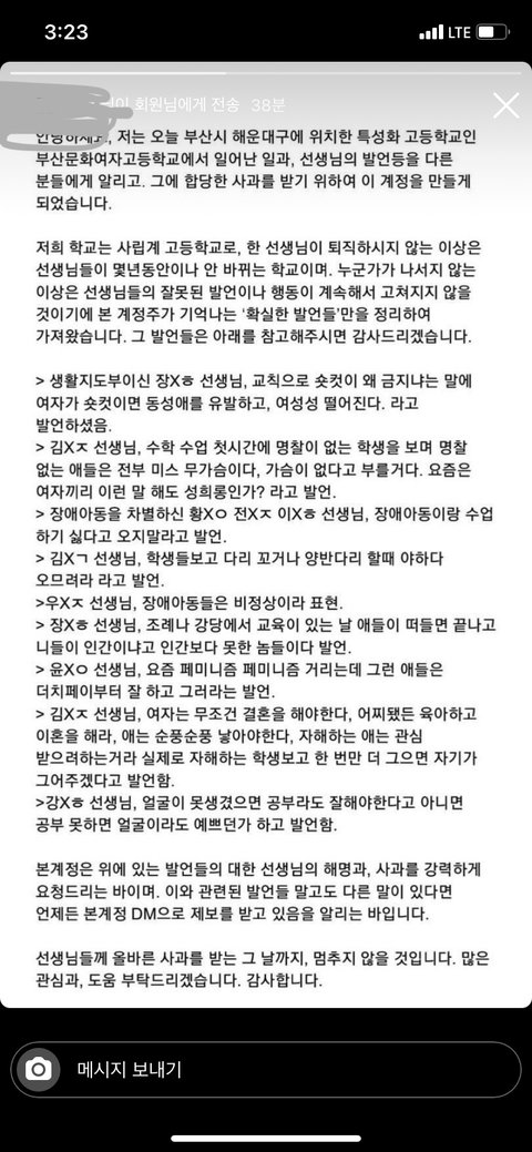 제 친구 학교인 부산 해운대 문화여고에서 일어난 일입니다