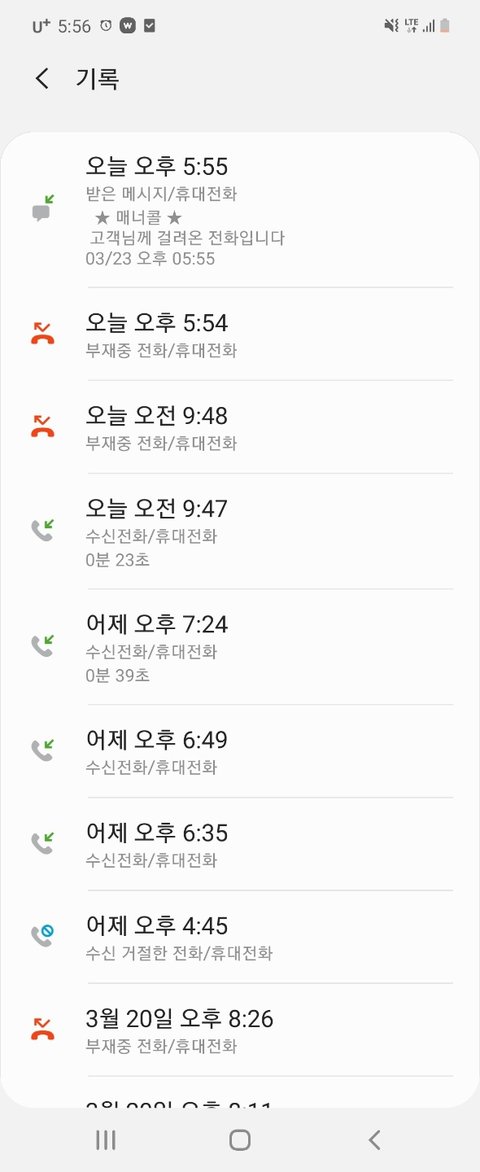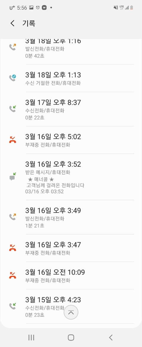 이게 많이 전화하시는 편이 아니라네요 말이되나요? 일하느라 못받은게 대부분이지만..