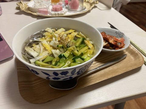 날 풀리기 전에 너무 추워서 달달 떨면서 멸치 육수 내고 끓인 잔치국수,,, 진짜 간장 양념도 없이 소금간만 대충 치고 할무니 김치 얹어 먹으니까 이게 사는 거지 싶었어요ㅋㅋ큐ㅠ