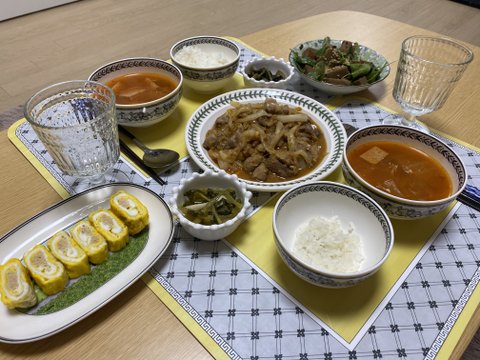 미국에서 만난 친구가 놀러와서 오랜만에 차려본 한식 한 상 차림! 돼지고기 된장 구이에 명란 계란말이+참치 김찌+도토리묵 챱챱 해서 새벽까지 놀았어요ㅎㅅㅎ