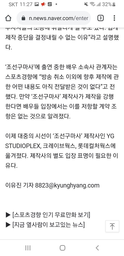 +조선구마서 제작사는 YG 스튜디오플렉스, 롯데 컬쳐웍스, 크레이브웍스야! 아래 전화번호 남길 테니까 다들 전화 한 번씩만 해줘라!!