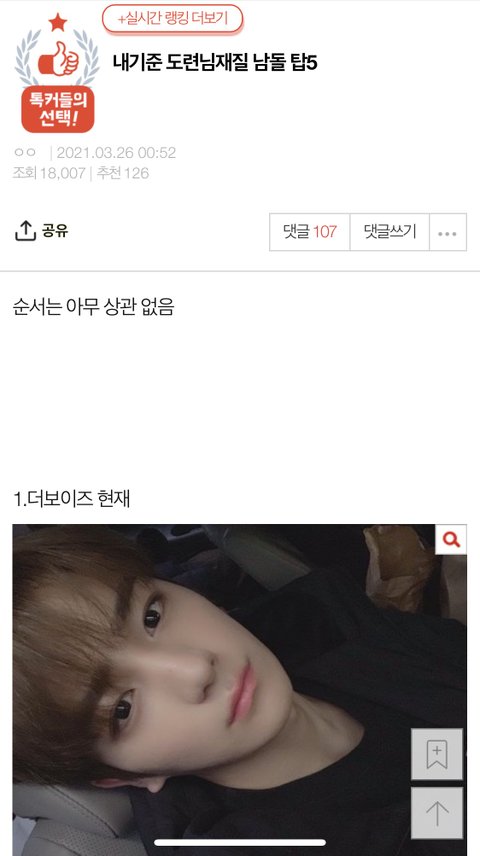 헐 톡선에 재현이 추천이랑 댓글 달자