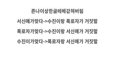 수진시녀들 아직도 지들이 왜 2차가해 하는지 모른다는 증거 글임 니들 필요한 일부 자료만 가져와서 나열하고 끼어 맞추지마 그게 주작이라는거야
