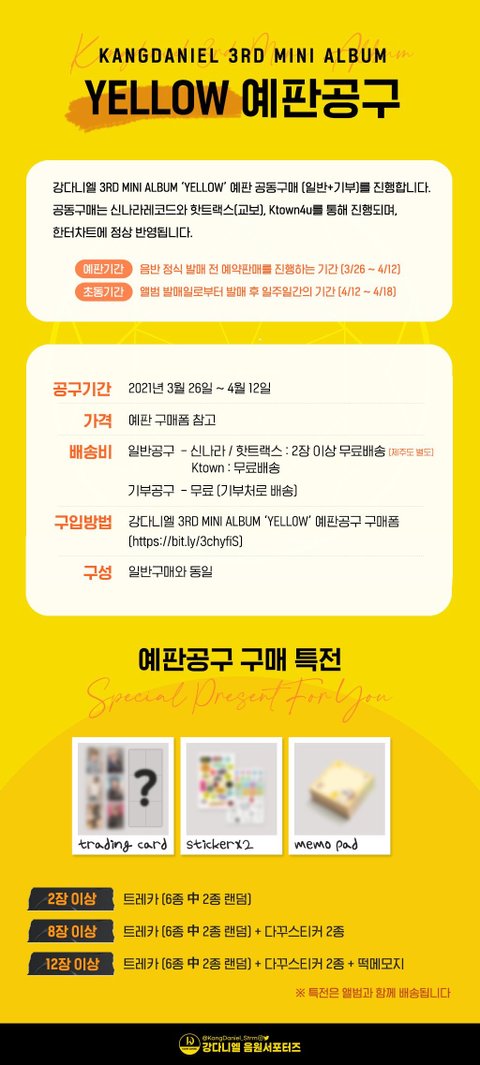 강다니엘 미니앨범 옐로우컴백 4/13 6PM