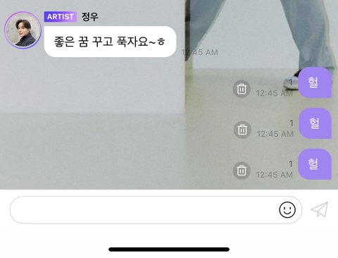 정우한테 버블 알림 분명 받앗는데 내용이 안뜨네