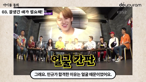 ㅇㅌㅂ 영상인데 민규 어릴때부터 지금까지의 일화같은거나 민규에 대한거 동화처럼 만든건데 개웃김ㅋㅋㅋㅋㅋㅋㅋ 나만 웃긴걸수도 있지만.,, 난 개처웃으면서 봤음 진지한데 왠지모르게 웃긴 그런,,, 어쨌든 개귀여움 다들 한번씩 봐바