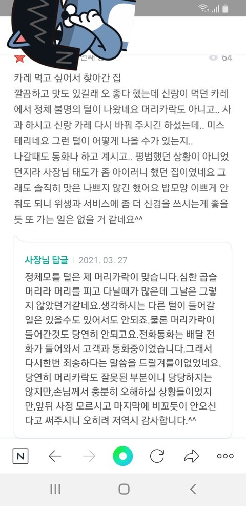 허, 순간 보고 어이가..요새 사장님들 댓글 말 많은 곳 많던데 이 곳도 그런 곳 중 하나인가 싶었네요
