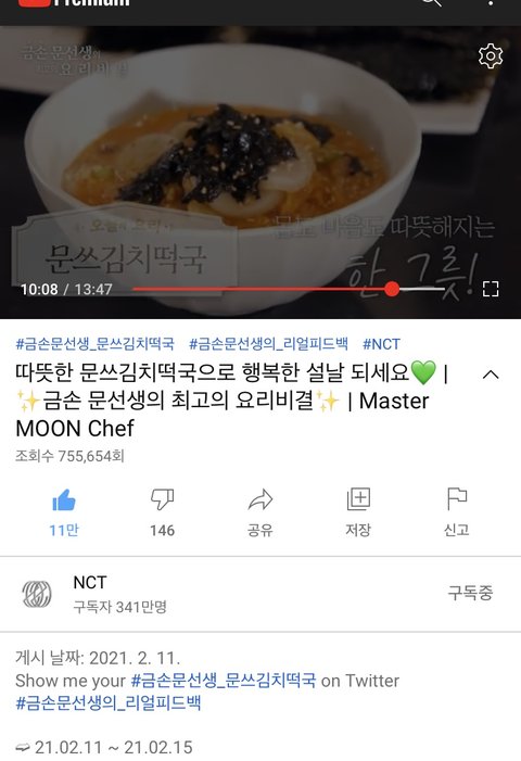 김치떡국 영상 한국어 베댓임 이때도 이시국이었음 그리고 불과 한달전임
