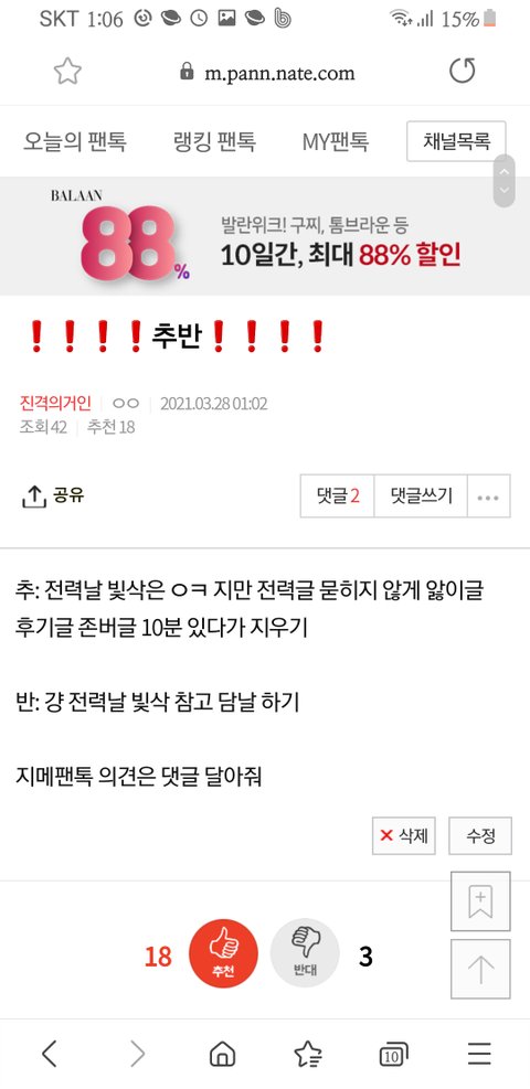 전력 날에 빛삭 올리는거 괜찮지만 묻힐 수 있으니 재깍재깍 최대한 빨리 10분 이하로 삭제하기