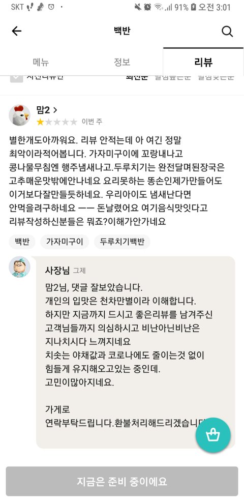 평점 4.9점짜리 한식집인데 말 왜 저렇게 하냐 ㅋㅋ 단골 집이라 그냥 한번 리뷰 봤는데 충격 먹음