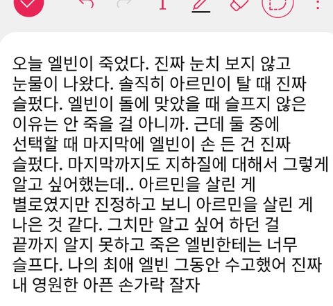 두 달 전 쯤에 백야 보고 진짜 펑펑 울면서 이 감정은 잊지 않으려고 그냥 막 생각나는 대로 적었었는데 다시 보니까 뭔가 흑역사같으면서도 개찌통이다.,