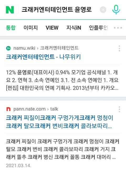 네이버에 그랙꺼 유녕로 치기만해도 저렇게 나옴 나같으면 울었어 ㅅㅂ