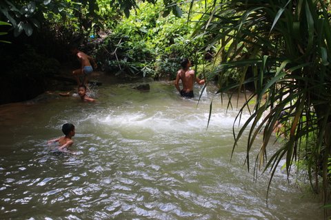 약 1시간 정도 오토바이를 타고 갔었어요.