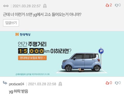 산하 레이블이여서 yg 자금이고