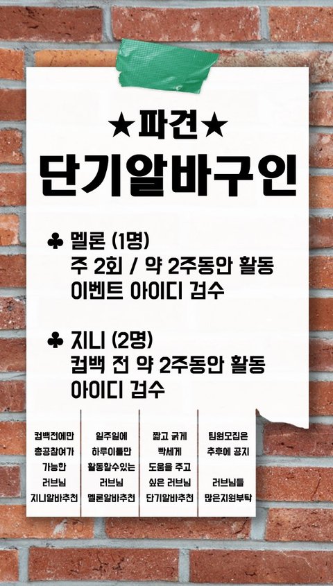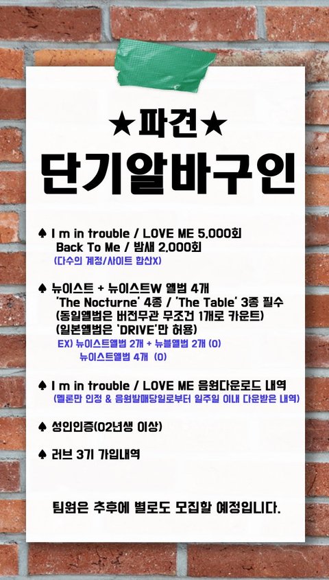 까먹고있었는데 방심했다 이제 ㅅㅁ인증으로바뀌기3주전인데 칫 ㅇㅊ팀에서 조만간 아뒤모집시작한대 스탭모집은 어려울 줄 알았는데 스텝모집두한대