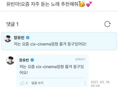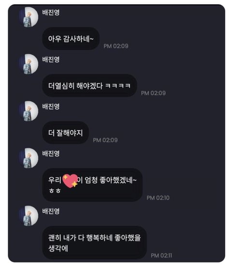 진영이가 유빈군한테 감사하다고ㅎㅎ
